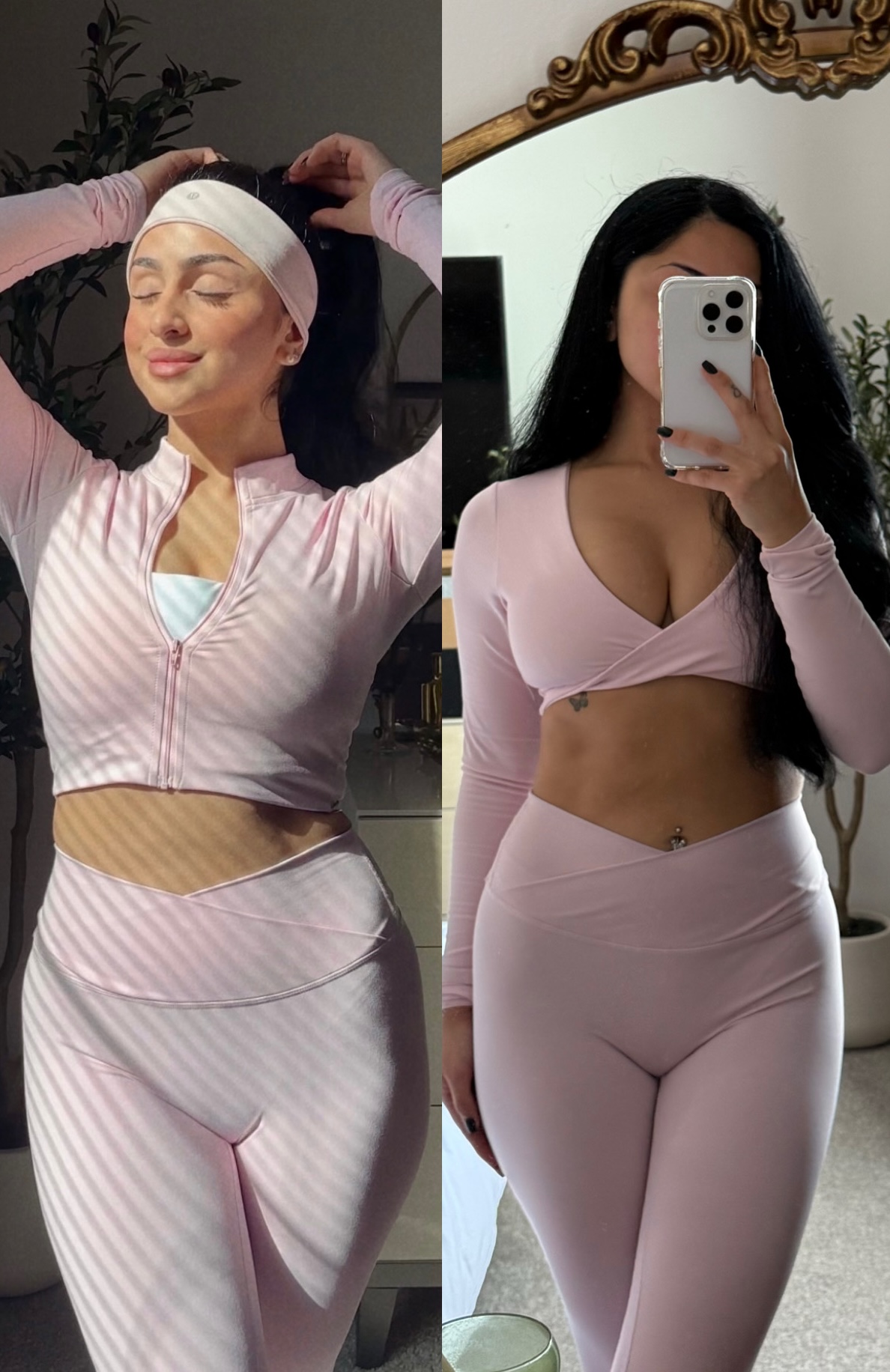 These two photos are from March 2025 (left) and October 2025 (right). I haven’t been tracking my physical improvements as much as I wish I could have, but when I re-wore this pink CSB set, I was excited to see small improvements and how much comfier I felt in it!